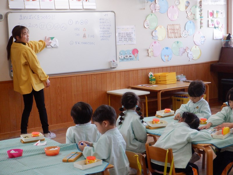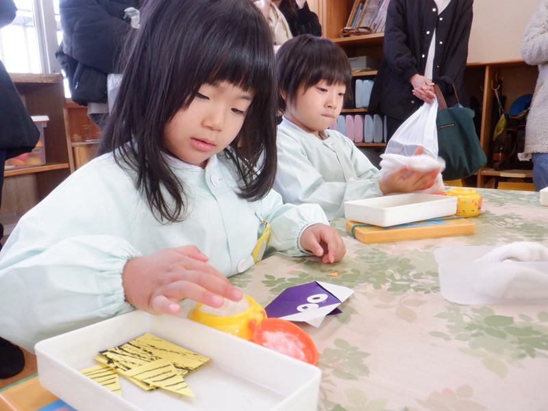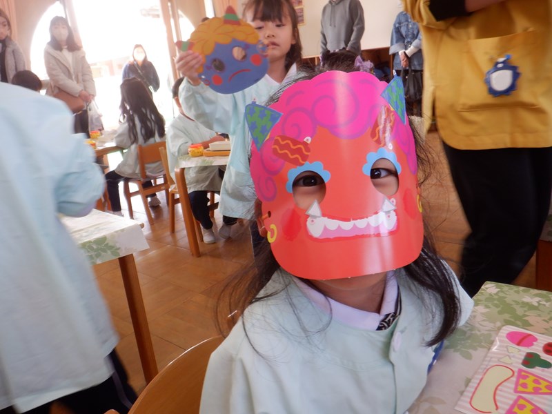 先日の誕生日会では鬼まんじゅうを食べましたが、他にも節分には恵方巻を食べたり柊鰯を飾るなどの風習があります。伝統行事を知り知識を深める機会にもなりましたね。