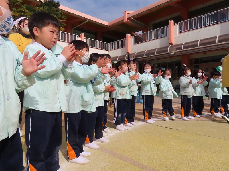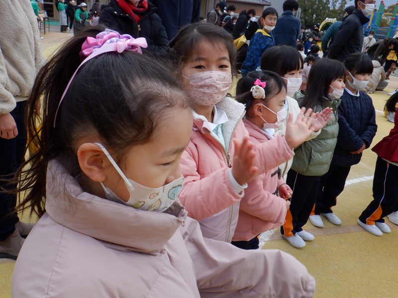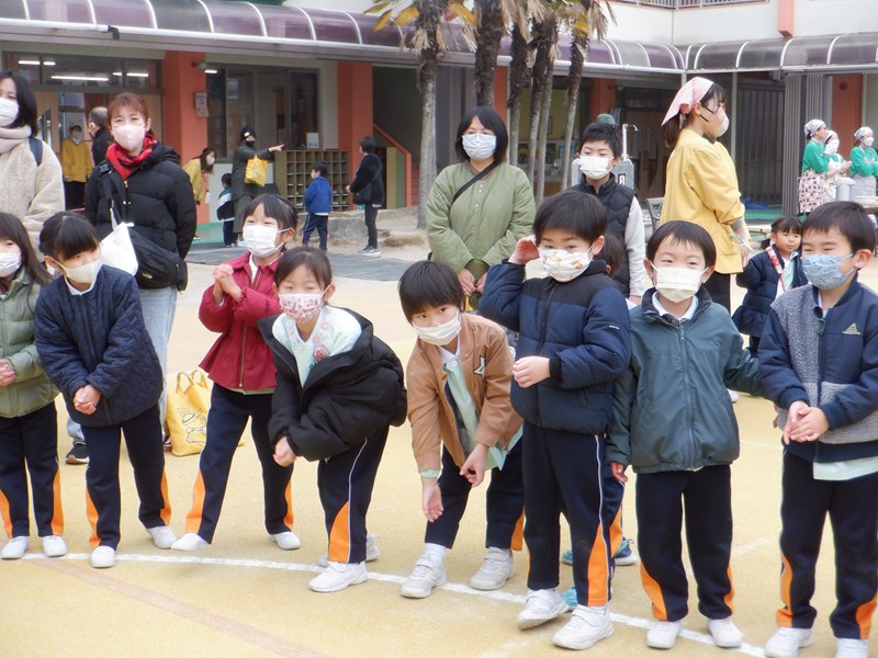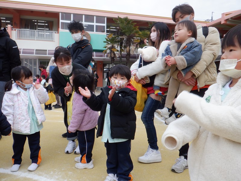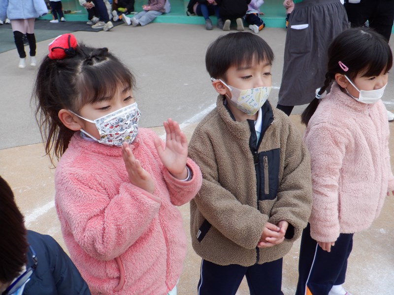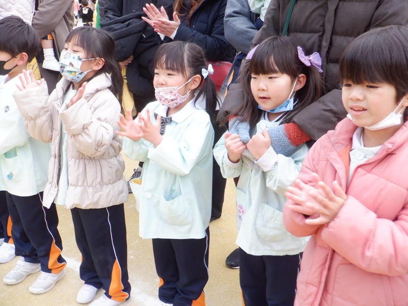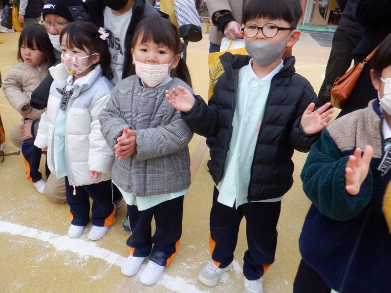 おとうさんおかあさんに観に来てもらって子どもたちもとっても嬉しそうでした。いつも以上に背筋が伸び、はりきっています。入園した頃と比べて、座って話を聞く姿勢も立派になりまるで小学生のようです。頼もしい園での姿を見てもらえましたね。