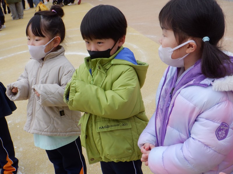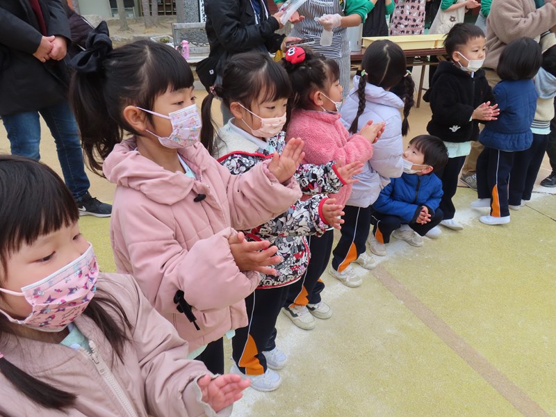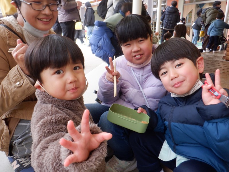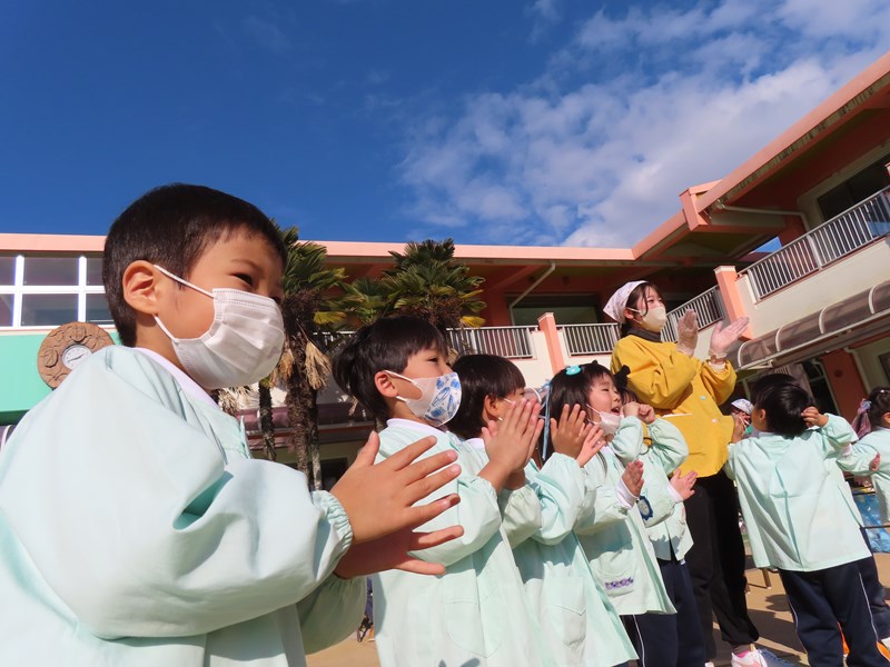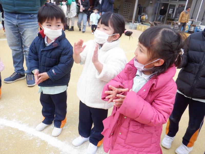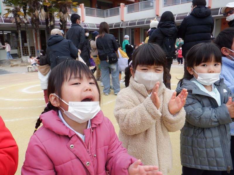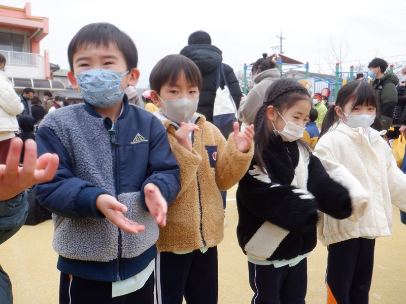おとうさんおかあさんに観に来てもらって子どもたちもとっても嬉しそうでした。いつも以上に背筋が伸び、はりきっています。入園した頃と比べて、座って話を聞く姿勢も立派になりまるで小学生のようです。頼もしい園での姿を見てもらえましたね。
