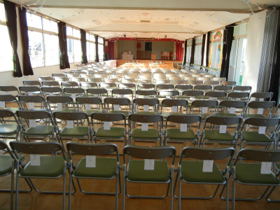 先日年長さんが巣立っていった後のお遊戯室では、全員が集まってもなんだか後ろの方が寂しくも感じました。