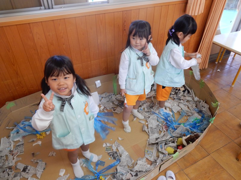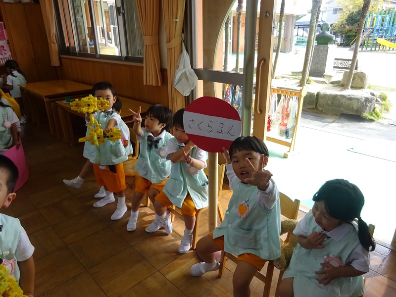 最近のさくらぐみでは、かくれんぼを楽しむ子、段ボールで作ったバスに乗り楽しむ子など、約束やルールを守って遊んでいます。