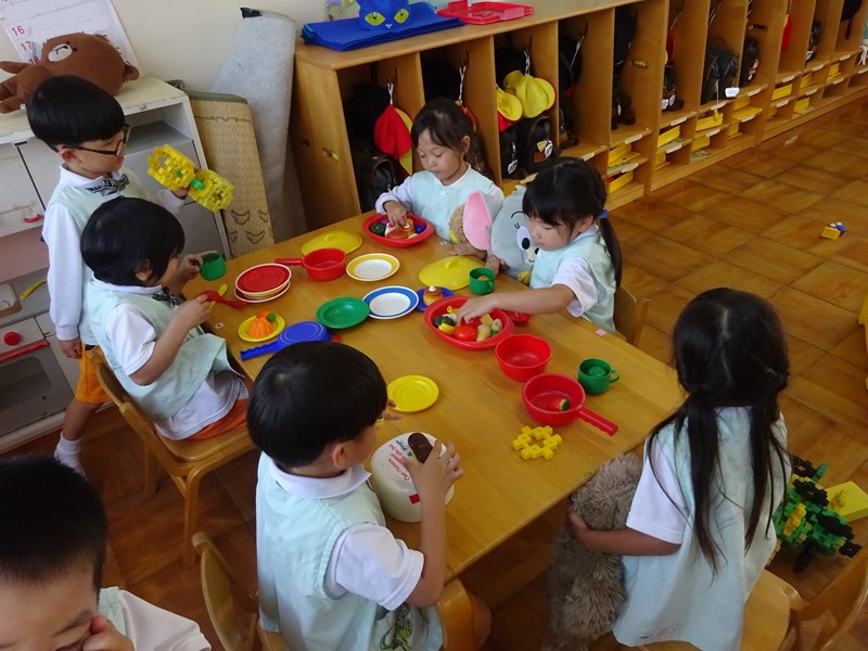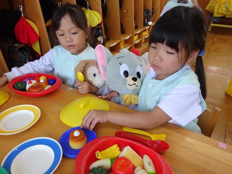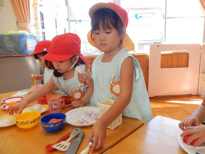 2学期に入ってからたんぽぽぐみではごっこ遊びをする姿が多く見られています。病院ごっこ、アイスクリーム屋さん、バーベキューごっこ、お風呂屋さんごっこ…。