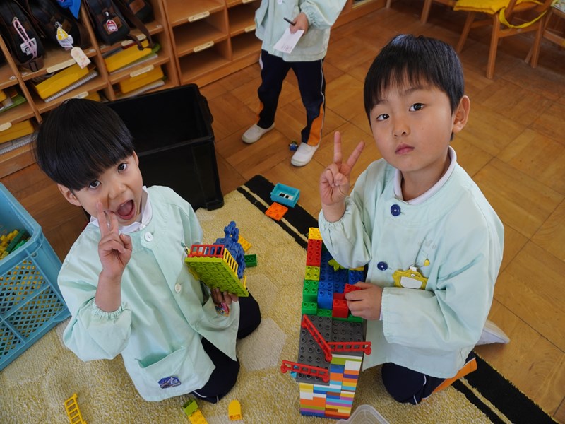 うぐいすぐみでは、サインを集めたりLEGOブロックで大きな家を作ったりして仲の良い友達と一緒に遊んでいます。