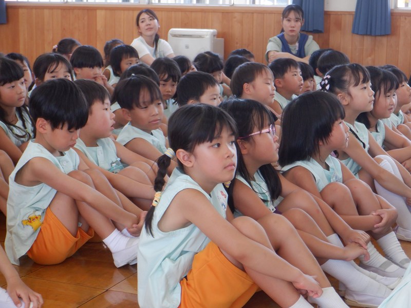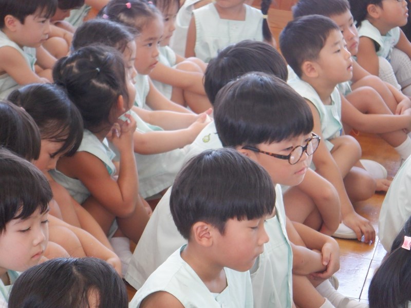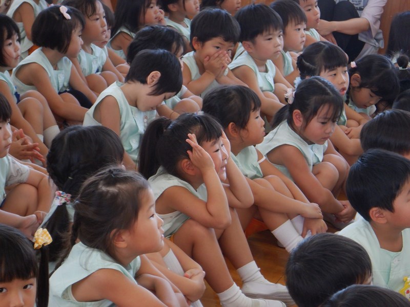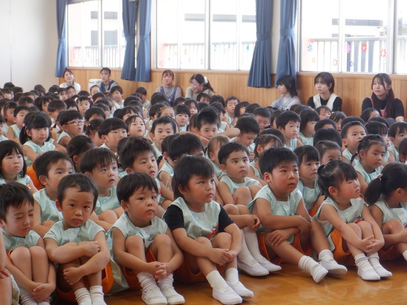 始業式では、元気いっぱいのあいさつをしました。姿勢を正してお話を聞く姿はみんなきりっとしています。園長先生から2学期は運動会やいも掘りなど楽しいことがたくさんあることを教えてもらいました。いろんな経験を通して子どもたちの頑張りや成長を職員と保護者の皆さん一緒に見守っていきましょう。よろしくお願いいたします。
