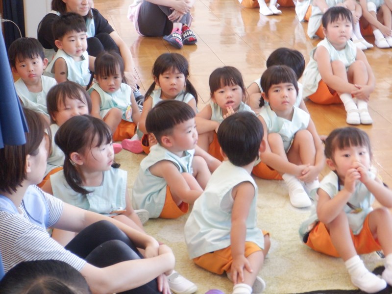 9月とはいえまだまだ日中は暑い日が続いています。そんな中8月生まれさんは元気いっぱい登場してくれました。拍手をたくさんもらって嬉しそうな笑顔です。見ているお客さんもたくさんの拍手とお祝いの言葉を上手に言えるようになってきましたね。おともだちを思う気持ちが表れていますね。