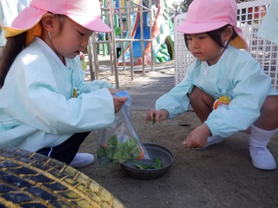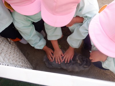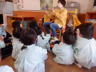 今日は年少の保育参観です。おとうさんおかあさんが来てくれて嬉しそうな子どもたちは元気に歌って踊り、いつも以上の笑顔がたくさん見られました。1学期の頃よりもさらに姿勢よく先生のお話が聞けるようになったところや、はさみやのりを使ってクリスマスツリーを作るところを見てもらいました。