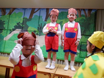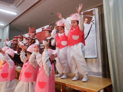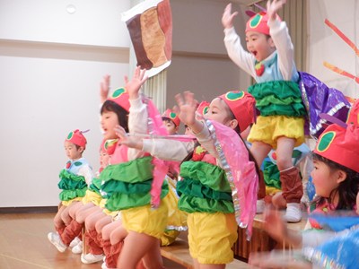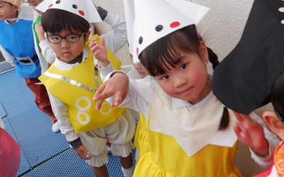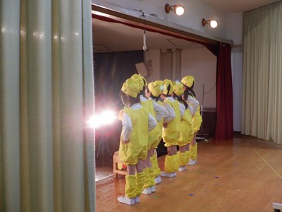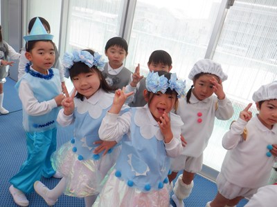 予行でお客さんを前に出演したクラスは、すてきな帽子や衣装を身に付け一生懸命頑張ってくれました。緊張してしまった子、いつも以上にはりきってくれた子、いろんな顔が見られましたが、みんな頑張りました。本番はおとうさん・おかあさんが観に来てくれるのでもっともっと頑張ってくれることでしょう。あと数日、体調を整えて元気に参加しましょうね。