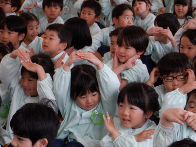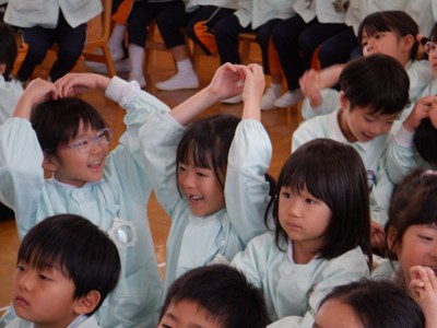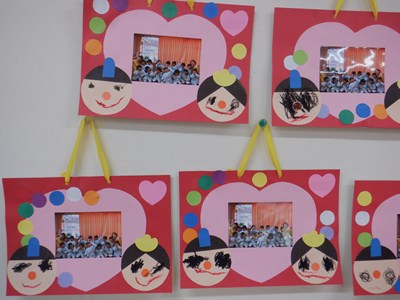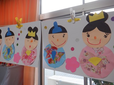 各クラスでひな飾りを作って飾り付けていましたね。それぞれお雛様の顔や着物に個性が出ていてとっても素敵でした。きっと、「こんな顔にしよう」「どの色を使おうかな」「こんな形にしたいな」などと、イメージを膨らませてそれを表現することができたのでしょう。1年間の経験でできることも増えて、表現の幅が広がりましたね。