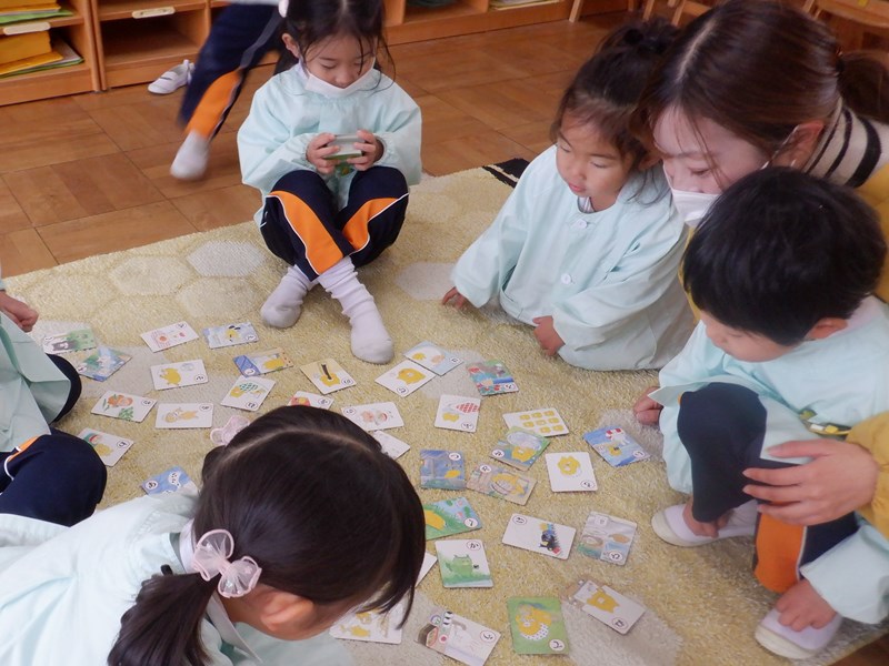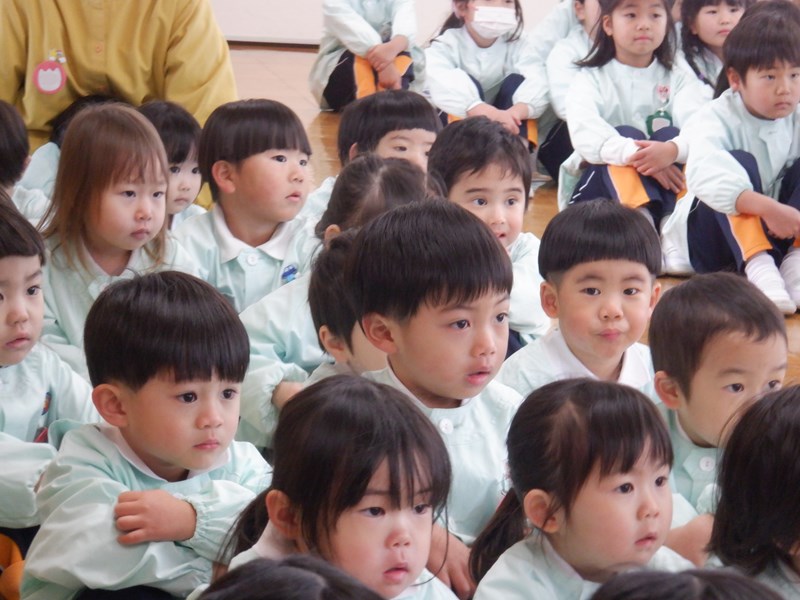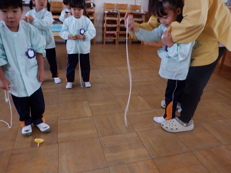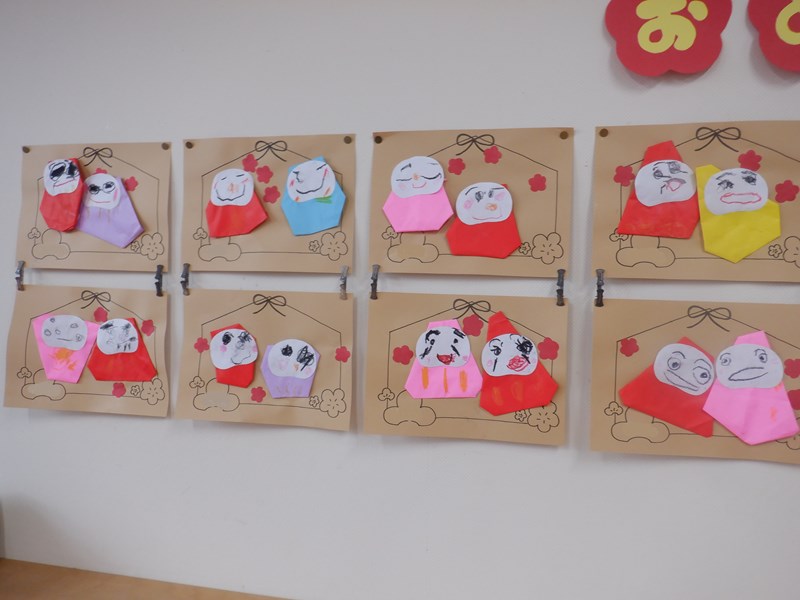久しぶりに元気な子どもたちの笑顔を見ることができて嬉しくなりました。一日保育でしたので、かるた、福笑い、こま回しなどの正月遊びで盛り上がったクラスもありました。