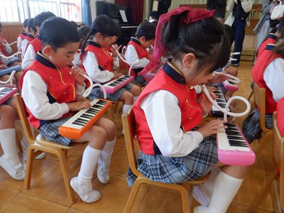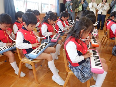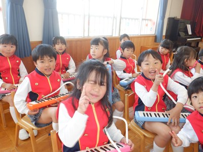 今年度も残すところあと2日となった昨日、年中の音楽会を行いました。鍵盤ハーモニカをはじめてから少しずつ練習を重ねてきて、みんなで合わせることの楽しさをわかってきました。 声を揃えると自然と楽器の音も揃ってくるということが実感できてきているようです。